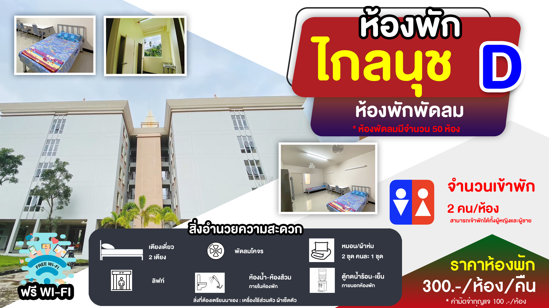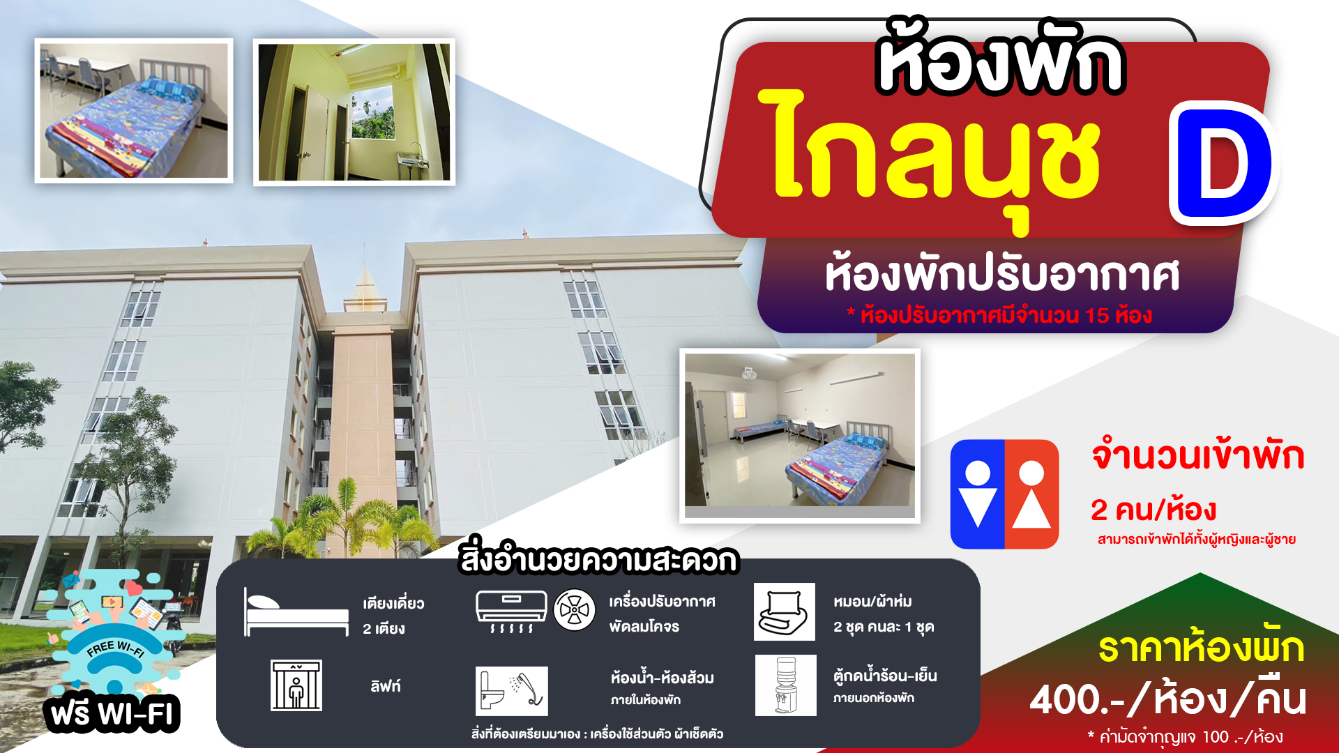 ติดต่อเข้าห้อง หน้าหอพักที่ได้จองไว้